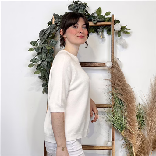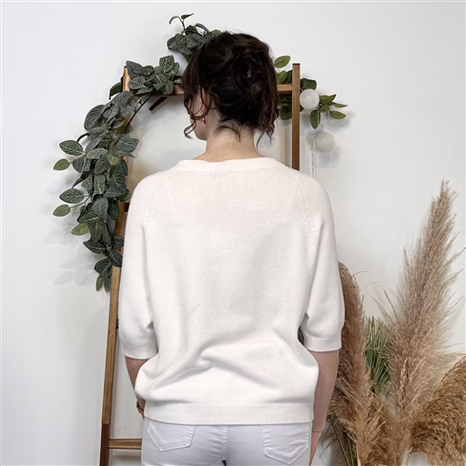 Pull en maille idéale pour ce début de saison. Col rond, manches courtes avec des finitions cotelées. Lavable en machine séparément à l’eau froide. Facile à associer avec toutes nos collections de Vêtements. Séchage sur fil. Repassage Max. 110°C sur l’envers. Pour l’entretien de vos vêtements, veuillez respecter les conseils sur les étiquettes.
