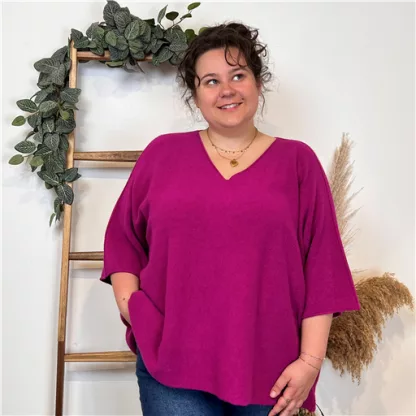 Pull Loose (large), proposé en taille unique, ce modèle conviendra du 44 au 52/54 en fonction de votre style. Vous l’adorez, retour de notre pull court fabriqué en italie avec de nouveaux coloris. Tout doux, pull hyper tendance à poser sur un chemisier ou une robe, le must-have de cette saison ! Ce Pull crop top en maille avec un col légèrement en v et des manches 3/4.