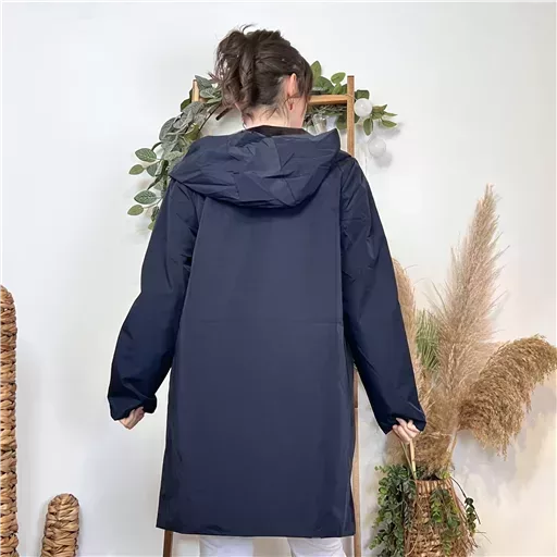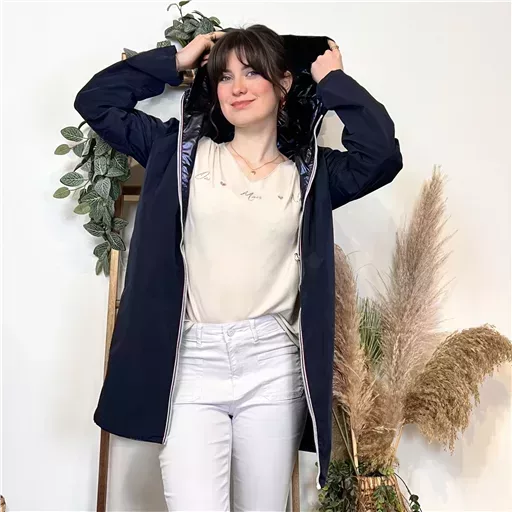 Voici un imperméables réversible griffé Melya avec capuche une veste de pluie qui peut faire face à toutes les conditions météorologiques. Si vous recherchez une veste de pluie légère et imperméable pour les activités de plein air, ce modèle est un excellent choix , facile à associer sur un jean Voggo.