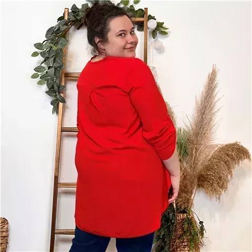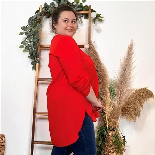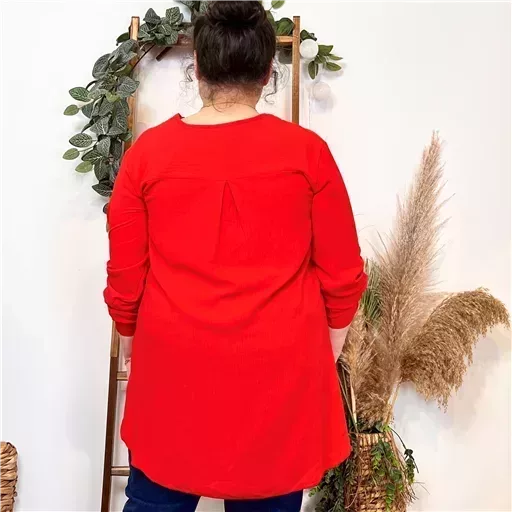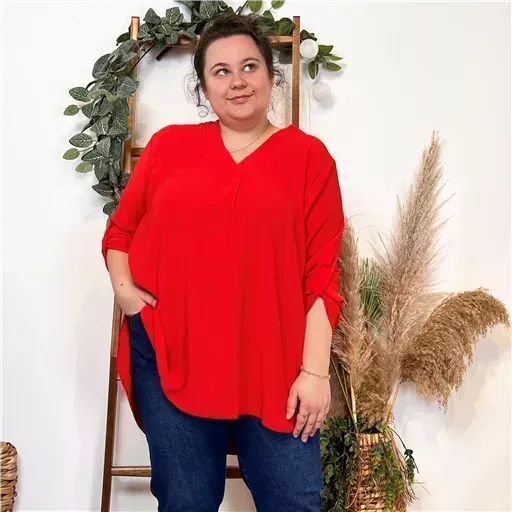 La simplicité pure pour cette tunique Grande taille de fabrication italienne qui se porte facilement en cette saison. Blouse fluide unie “Jolies Formes”, ravissante aux manches longues avec finition poignets et lien pour remonter les manches. Encolure en V. Encolure bien dégagée. Forme droite, arrondie sur les cotés. Facile à associer avec nos pantalons Confort JST, nos jean Voggo à 18.90€ ou nos pantalons C’Mélodie.