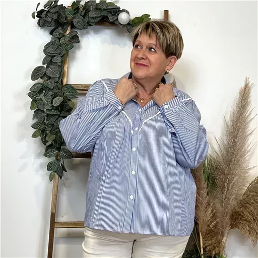 K508- Chemise coton «Maëlle» (T40-T48) (bleu indigo)