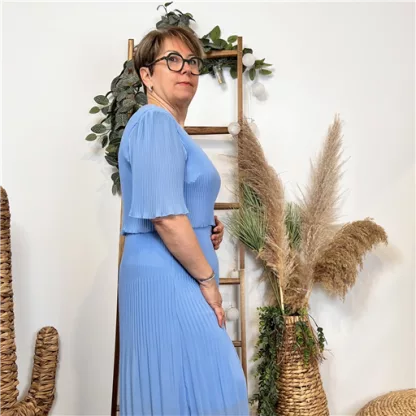 K321- Robe Plissée unie (TU) 🇮🇹 (bleu ciel)
