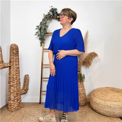 K321- Robe Plissée unie (TU) 🇮🇹 (bleu royal)