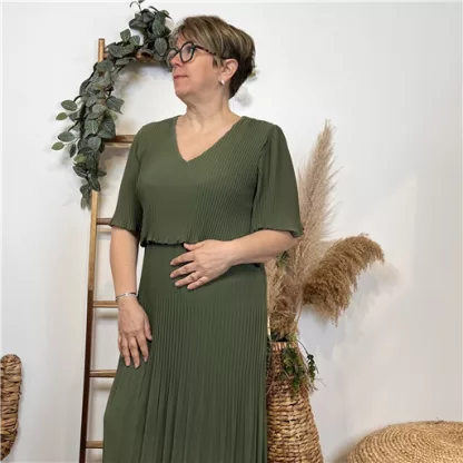 K321- Robe Plissée unie (TU) 🇮🇹 (kaki)