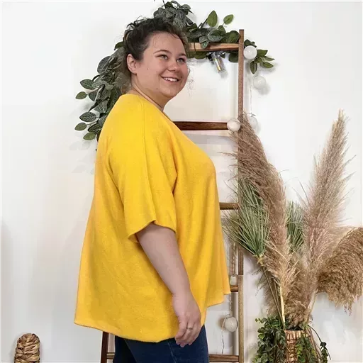 Pull Loose (large), proposé en taille unique, ce modèle conviendra du 44 au 52/54 en fonction de votre style. Vous l’adorez, retour de notre pull court fabriqué en italie avec de nouveaux coloris. Tout doux, pull hyper tendance à poser sur un chemisier ou une robe, le must-have de cette saison ! Ce Pull crop top en maille avec un col légèrement en v et des manches 3/4.