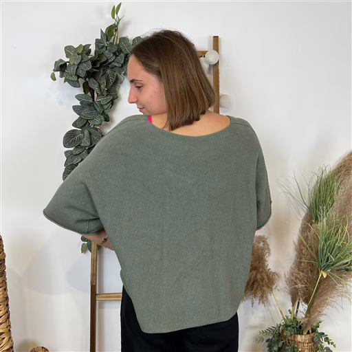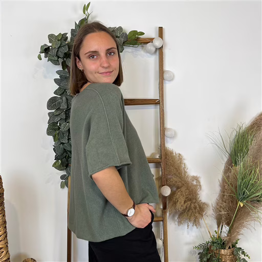 Pull crop top loose en maille avec des manches courtes.