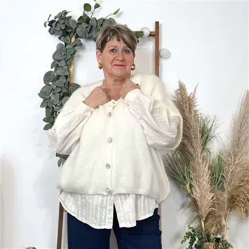 Ce gilet à manches avec ses gros boutons fantaisies est effectivement un incontournable de la saison ! Sa fabrication italienne lui confère une élégance particulière. Il se marie parfaitement avec une blouseunie ou imprimée ou un chemisier, ajoutant une touche chic à n’importe quelle tenue. Avec sa taille unique qui convient du 38/40 au 44/46, il est aussi idéal pour s’adapter à différentes silhouettes. Une pièce à ne pas manquer pour rehausser votre garde-robe !