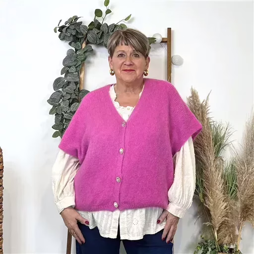 Z083- Gilet boutons fantaisies (Gu) (fuchsia)