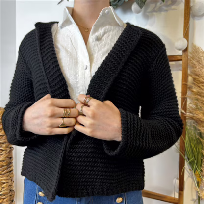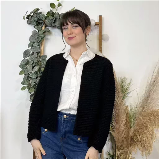 Ce gilet court manches longues, sans bouton a de belles finitions maille tricot, il est vraiment une pièce tendance ! De fabrication italienne, il vous assurera qualité et style, tandis que les couleurs proposées permettent de l’associer facilement à votre garde-robe. Avec sa taille adaptable du 36 au 40, il s’ajuste à diverses morphologies, ce qui le rend pratique et confortable. Portez-le sur une blouse ou une robe pour un look chic et décontracté. Un choix parfait pour ajouter une touche de douceur et de personnalité à vos tenues !