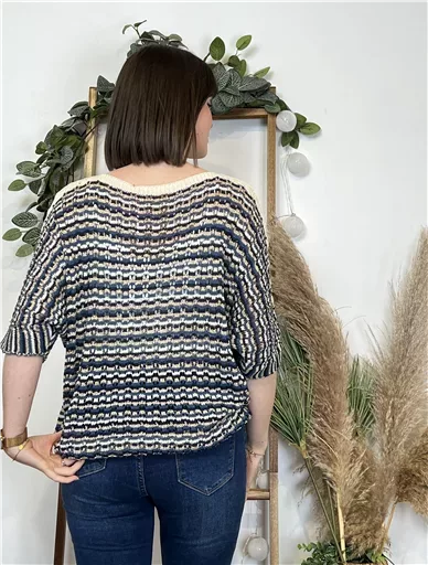 K101- Pull rayé Lurex (Tu) 🇮🇹 (marine)
