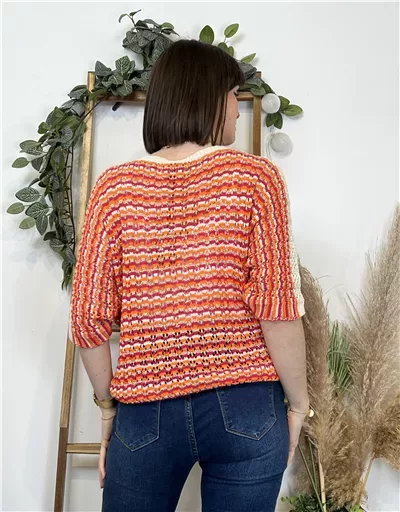 K101- Pull rayé Lurex (Tu) 🇮🇹 (orange)