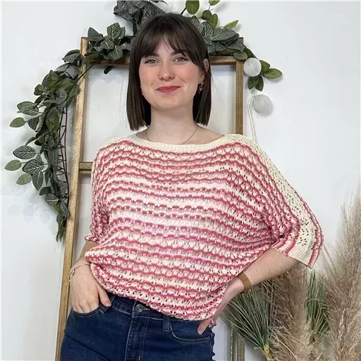 K101- Pull rayé Lurex (Tu) 🇮🇹 (fuchsia)