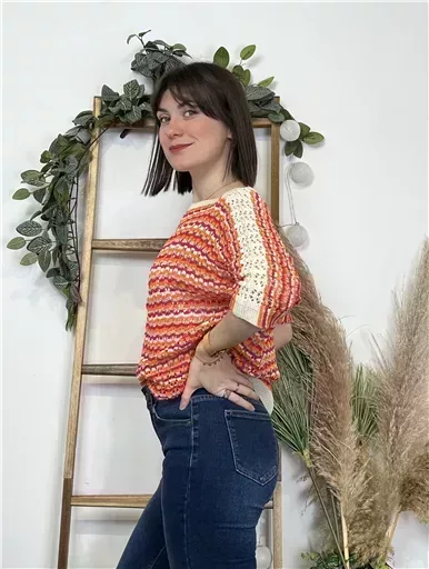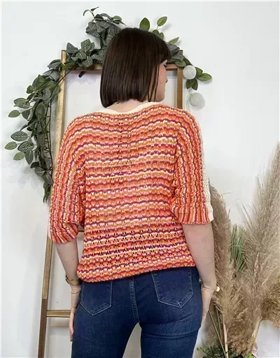 K101- Pull rayé Lurex (Tu) 🇮🇹 (orange)