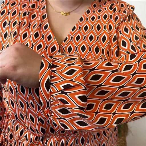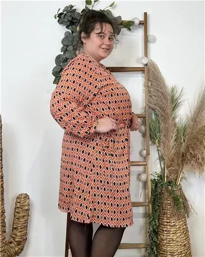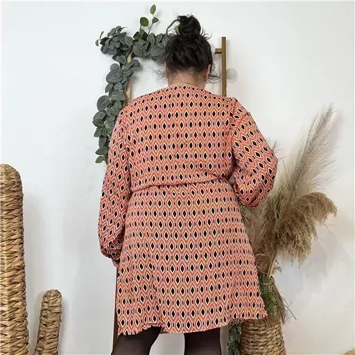 La Robe fluide courte doublée imprimée LOSANGES de la marque “Akoz de Toi” est une création magnifique qui a tout pour plaire. Choisissez votre taille en fonction de votre morphologie. Elle est courte, avec des manches longues légèrement ressérée au niveau des poignets et un magnifique décolleté. Une ceinture en tissus afin de souligner la taille ajoutent une touche de sophistication. facile à glisser sous un gilet, un pull court et de jolis collants.