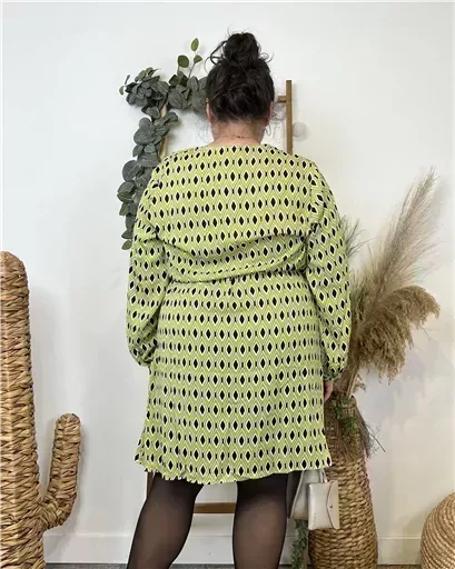 La Robe fluide courte doublée imprimée LOSANGES de la marque “Akoz de Toi” est une création magnifique qui a tout pour plaire. Choisissez votre taille en fonction de votre morphologie. Elle est courte, avec des manches longues légèrement ressérée au niveau des poignets et un magnifique décolleté. Une ceinture en tissus afin de souligner la taille ajoutent une touche de sophistication. facile à glisser sous un gilet, un pull court et de jolis collants.