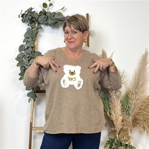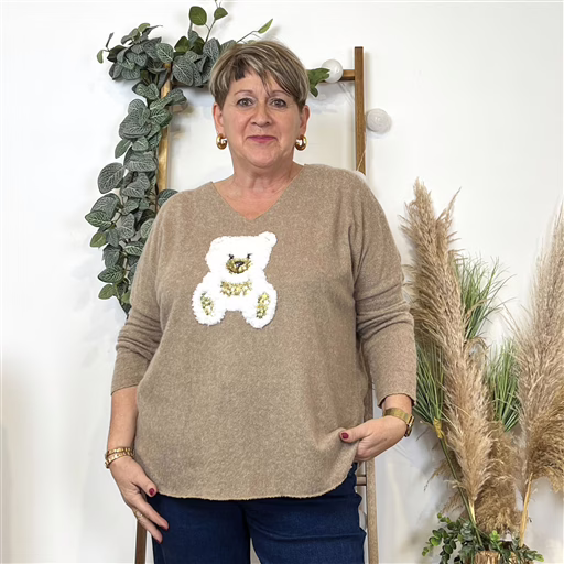 Ce Pull fond uni de fabrication italienne pour femme est proposé avec son patch Ourson sur le devant. Proposé en taille unique il conviendra du 42 au 48 en fonction des différentes morphologies. Ce pull coupe droite est confectionné en maille un tissu doux et chaud sans être trop épais rendant ce dernier idéal pour les saisons fraîches. Il présente un col V, et des finitions cousues. Le Must Have de cette année 2025.