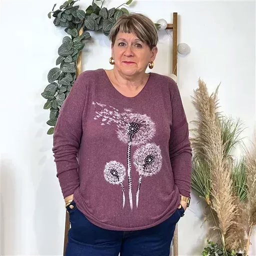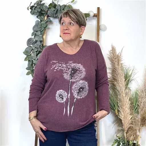 Ce pull fond uni de fabrication italienne pour femme est proposé avec son imprimé pissenlits sur le devant. Proposé en taille unique il conviendra du 42 au 48 en fonction des différentes morphologies. Ce pull coupe droite est confectionné en maille un tissu doux et chaud sans être trop épais rendant ce dernier idéal pour les saisons fraîches. Il présente un col V, et des finitions cousues. Le Must Have de cette année 2025.