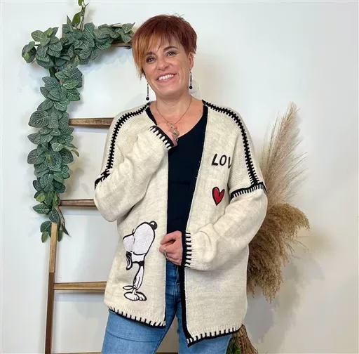 K701- Gilet Snoopy & Love (Tu) (beige)