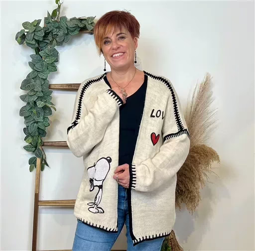 Libérez votre rock star intérieure avec notre gilet fantaisie Snoopy & Love sans boutons, coupe légèrement trapèze et surpiqures ornée au niveau des finitions. Ce modèle, disponible dans une palette de couleurs tendance, s’adapte à toutes les morphologies grâce à sa coupe universelle qui convient du 34 au 42.