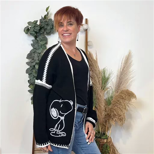 Libérez votre rock star intérieure avec notre gilet fantaisie Snoopy & Love sans boutons, coupe légèrement trapèze et surpiqures ornée au niveau des finitions. Ce modèle, disponible dans une palette de couleurs tendance, s’adapte à toutes les morphologies grâce à sa coupe universelle qui convient du 34 au 42.