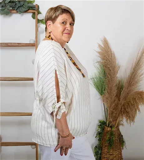 Une tunique de fabrication italienne qui se porte facilement en cette saison. Blouse fluide imprimée proposée en taille unique. Ravissante aux manches 3/4. Encolure bateau bien dégagée. Facile à associer avec nos pantalons Confort JST, nos jeans Voggo à 18.90€ ou nos pantalons C’Mélodie.