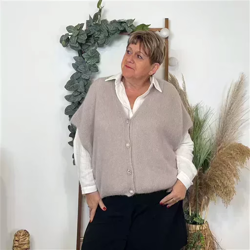 Ce gilet à manches avec ses gros boutons fantaisies est effectivement un incontournable de la saison ! Sa fabrication italienne lui confère une élégance particulière. Il se marie parfaitement avec une blouseunie ou imprimée ou un chemisier, ajoutant une touche chic à n’importe quelle tenue. Avec sa taille unique qui convient du 38/40 au 44/46, il est aussi idéal pour s’adapter à différentes silhouettes. Une pièce à ne pas manquer pour rehausser votre garde-robe !