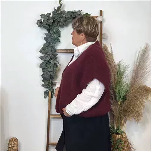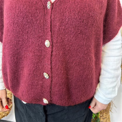 Z083- Gilet boutons fantaisies (Gu) (bordeaux)