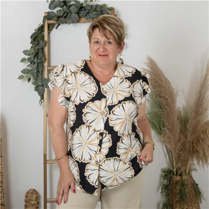 Z165-Chemisier imprimée Christy (T44-T52) (noir)