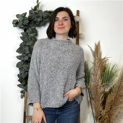 Adoptez le style cocooning avec ce pull col cheminée en maille bouclette. Sa coupe ample et sa matière moelleuse en font un basique incontournable de la saison. Associez-le à un jean skinny et des baskets pour un look urbain et décontracté.