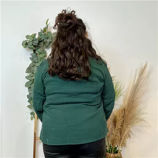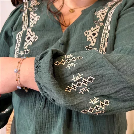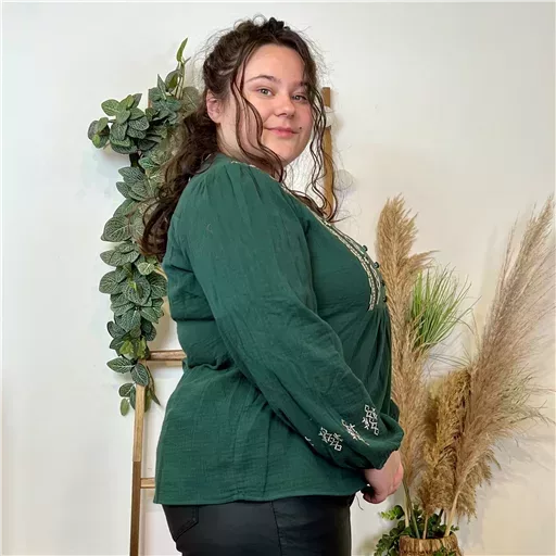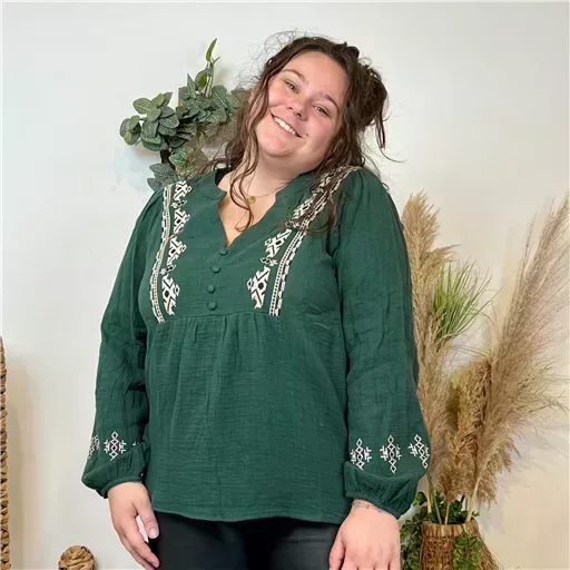 K769- Blouse coton brodée (T40-t48) (vert sapin)