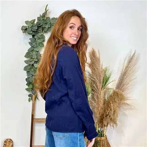 K789- Blouse Coton brodée (T36-T40) (marine)