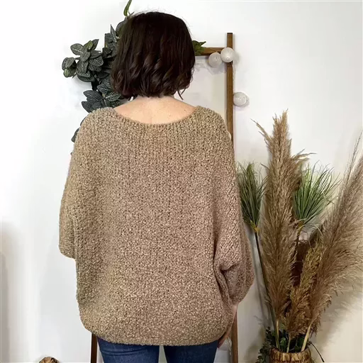 K064- Pull Oversize Maille Bouclette 🇮🇹 (camel)