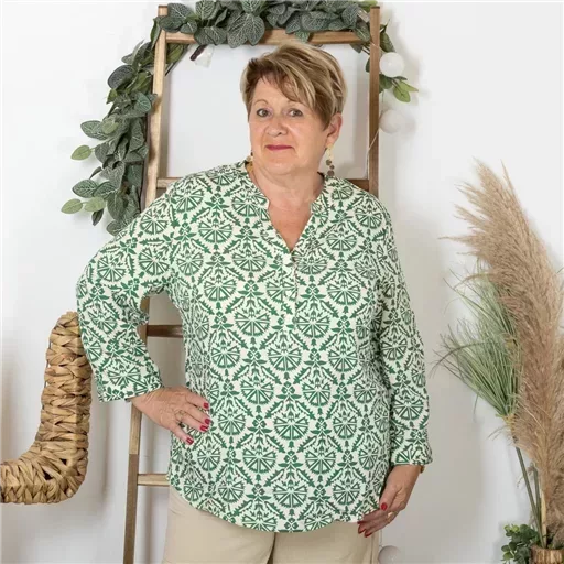 Z792- Tunique « Rosaces » (T44-T52) (vert brésil)
