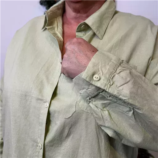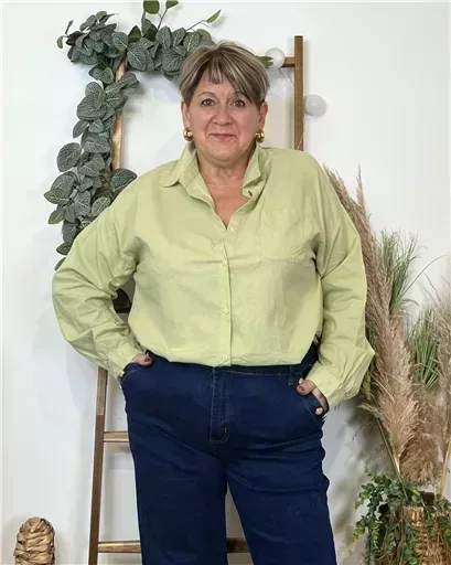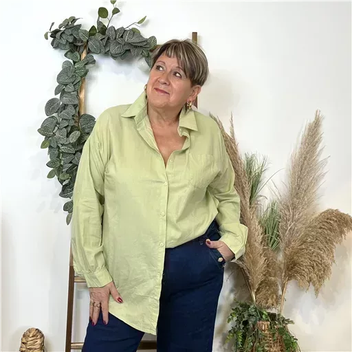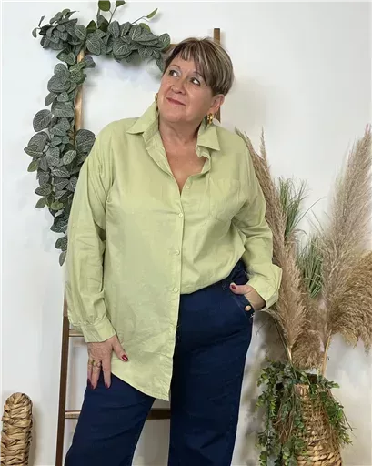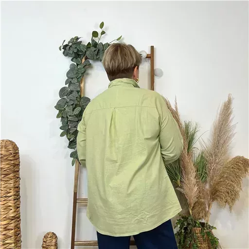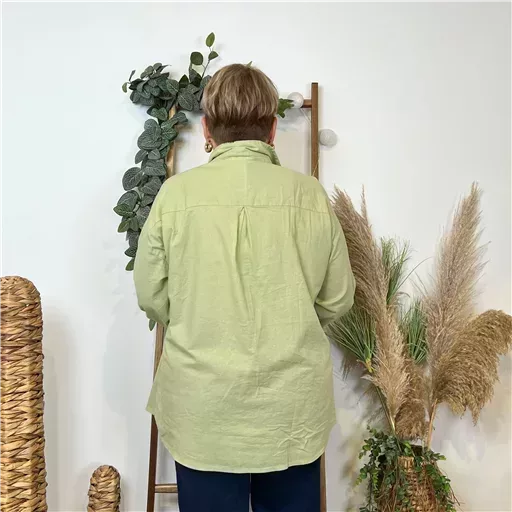 Z760-Chemisier uni Lin/coton (T44-T52) (vert anis)