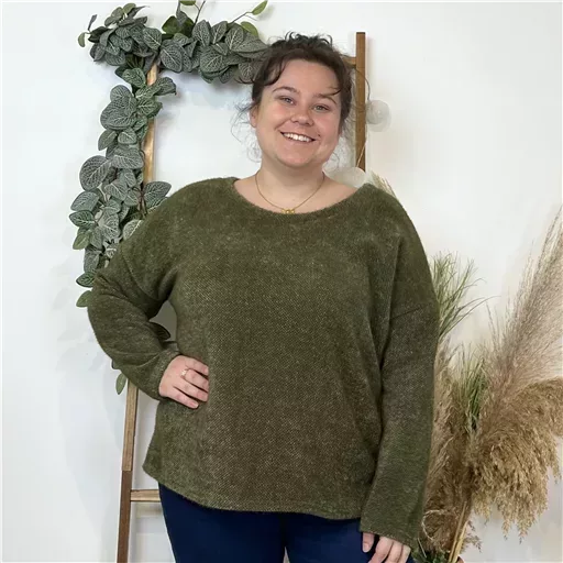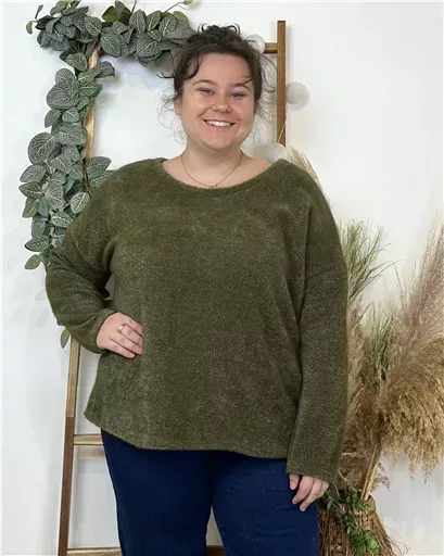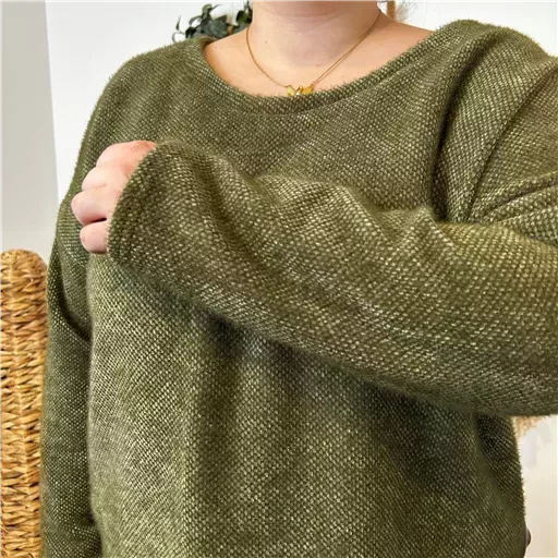 Pull uni proposé en taille unique maille nid d abeille duveteux convenant du 40/42 au 46/48 en fonction des différentes morphologies
