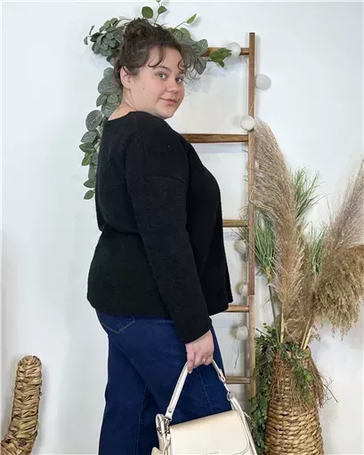 Pull uni proposé en taille unique maille nid d abeille duveteux convenant du 40/42 au 46/48 en fonction des différentes morphologies