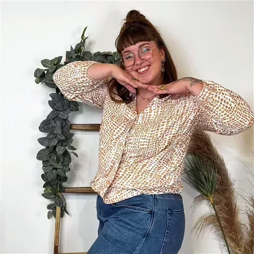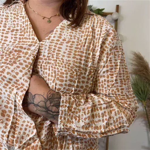 Cette blouse coupe boule est très élégante ! Avec son encolure en V fermé par une pression et son effet cache-cœur, elle offre un joli décolleté tout en restant pratique. Les manches longues avec poignets ressérés ajoutent une touche pratique, parfaite pour différentes occasions.