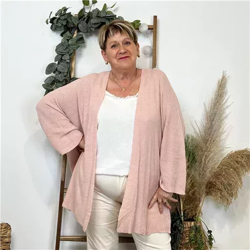 Z164- Gilet Maille Nid d abeille (Gt) (rose pâle)