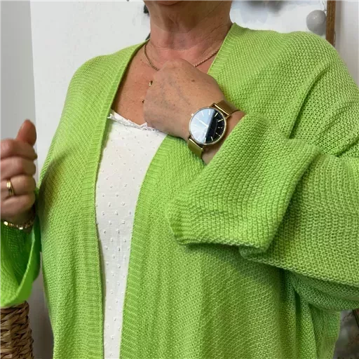 De fabrication italienne, ce gilet s’associera facilement avec nos collections de prêt à porter femme. Veste légère manches longues. Maille nid d abeille facile à porter sur un jean ou un pantalon jogg.