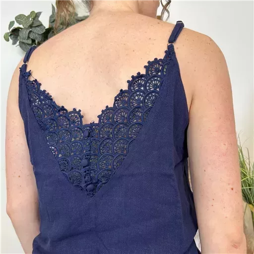 Ce top est une pièce légère et agréable à porter qui conviendra parfaitement à la saison estivale. Le dos avec sa broderie en V est originale la finition ajoute une touche de raffinement. Des bretelles fines ajustables permettent de l’adapter à toutes les morphologies. Choisir sa taille habituelle. Choisir sa taille habituelle. T S/M= 36/38, T M/L = 38/40.