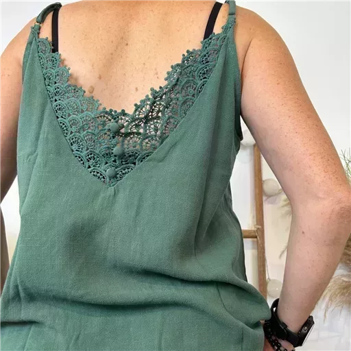 Ce top est une pièce légère et agréable à porter qui conviendra parfaitement à la saison estivale. Le dos avec sa broderie en V est originale la finition ajoute une touche de raffinement. Des bretelles fines ajustables permettent de l’adapter à toutes les morphologies. Choisir sa taille habituelle. Choisir sa taille habituelle. T S/M= 36/38, T M/L = 38/40.