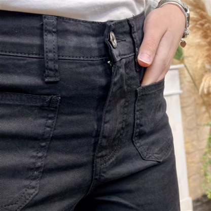 Jean wide leg taille haute à la coupe ample et élégante, idéal pour une silhouette allongée. Sa taille haute structure la ligne tandis que la jambe large apporte un tombé fluide et tendance. Confectionné dans une matière légère et confortable, il se porte facilement au quotidien, aussi bien avec un top ajusté, qu’une blouse plus habillée.