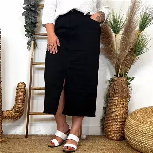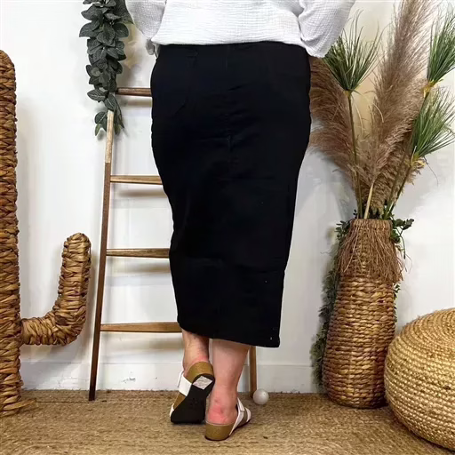 L726- Jupe en jean longue (T42-T52) (noir)
