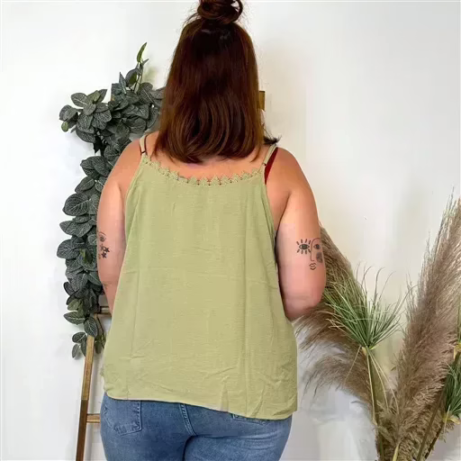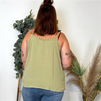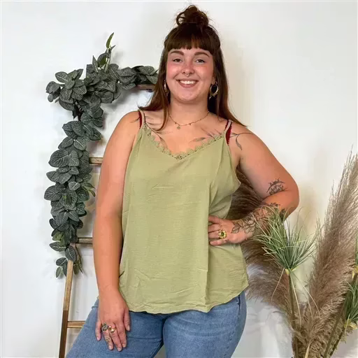 Débardeur fines bretelles Christy : Un indispensable pour votre garde-robe. Fines bretelles pour un look féminin et délicat; top col en V avec une finition dentelle pour une touche d’élégance. Modèle SOYEUX pour un confort optimal et un toucher luxueux. Coupe fluide et légèrement cintrée pour flatter la silhouette. Polyvalent il se portera aussi bien en été qu’en hiver, pour un look décontracté ou plus habillé. Facile à assortir avec un jean, un pantalon, une jupe ou une gilet pour créer une multitude de looks différents.