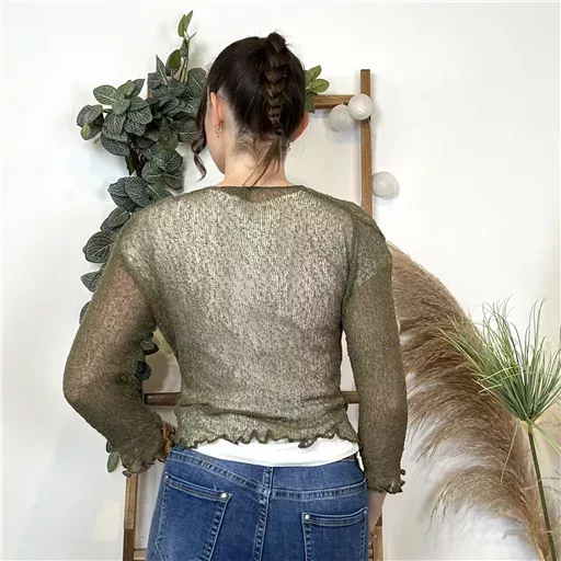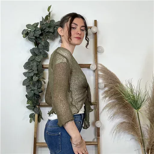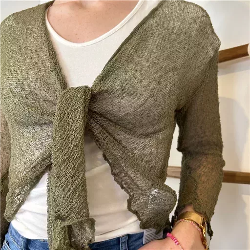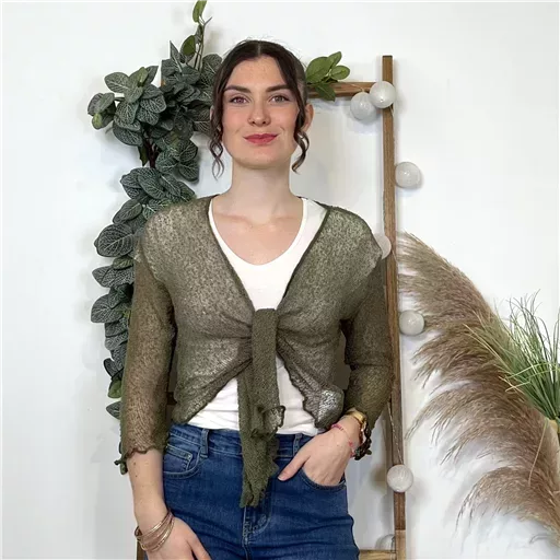 L541- Gilet ajouré à nouer Coline (Tu) (kaki)