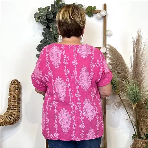 Z356- Tunique imprimé cachemire (Tu) 🇮🇹 (fuchsia)