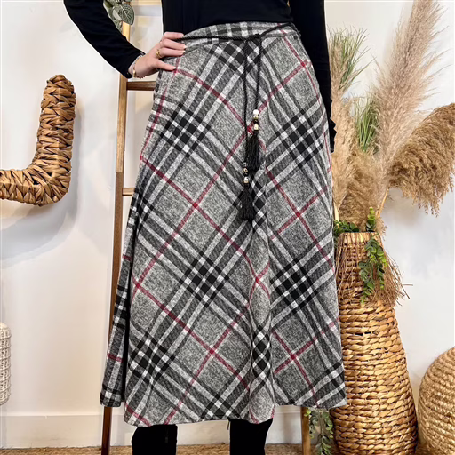 L710 – Jupe longue écossaise (TU) (gris)