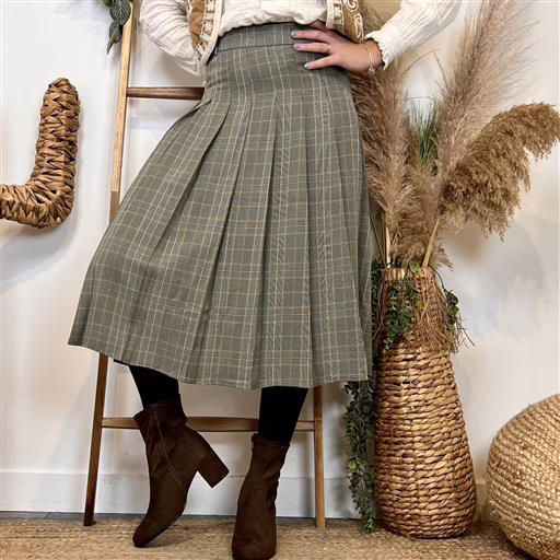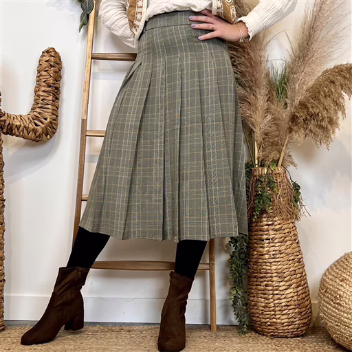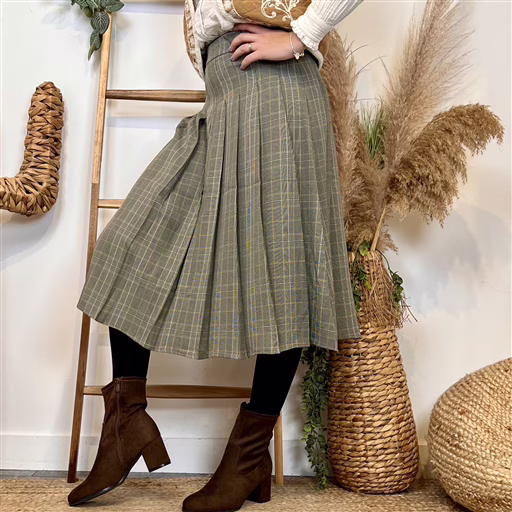 Cette jupe midi plissée à l’imprimé écossais est une pièce incontournable. Ce modèle à la taille plate, se distingue par sa simplicité et sa fermeture éclair pour la praticité. Une jupe longueur midi pour femme à la coupe évasée, confectionnée dans une matière légère ultra confortable. Cette jupe se porte aussi bien avec un T-shirt, ou une blouse ou un pull quand les jours se rafraichissent.