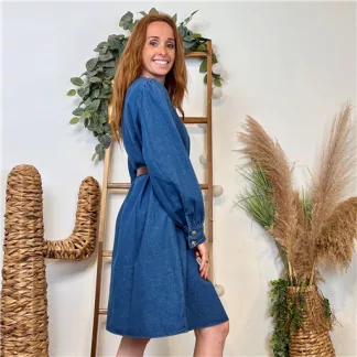 Cette jupe en jean denim Voggo est une pièce incontournable. Ce modèle se distingue par sa simplicité et ses rivets métalliques sur les poches. Une jupe femme fendue à l’arrière et à la coupe très légèrement évasée, confectionnée dans une matière extensible ultra confortable. Cette jupe courte se porte aussi bien avec un T-shirt, ou une blouse. Vous connaissez les jeans Voggo, vous apprécierez la version jupe.