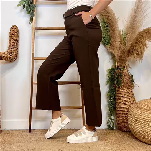 L752- Pantalon Tailleur Taille Haute (T36-T42) (marron)